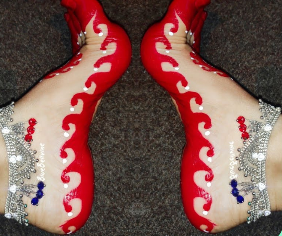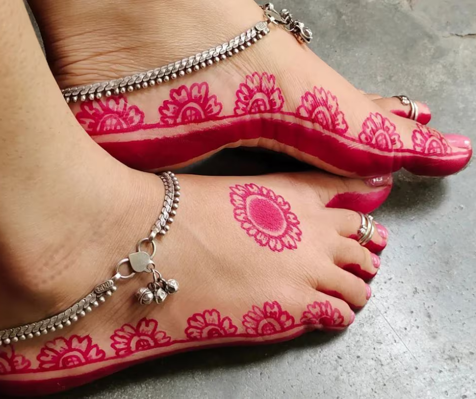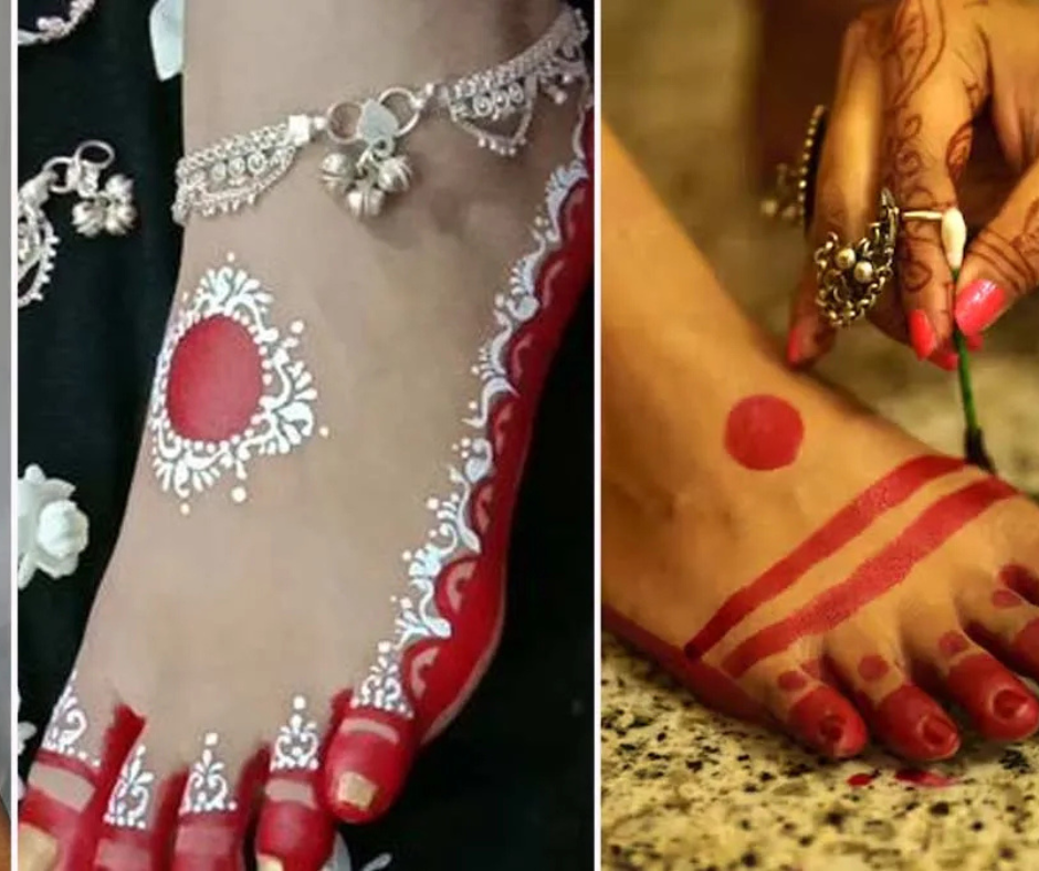 बीच में बिंदी बनाकर उसके चारों ओर पंखुड़ियों जैसी आकृतियां सजाएं। यह पारंपरिक लुक देने के साथ-साथ पैरों को और भी ग्रेसफुल बनाता है।